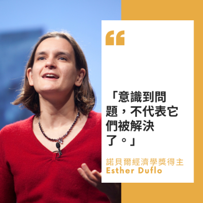2019年諾貝爾經濟學獎得主杜芙洛(Esther Duflo)成為史上最年輕得主,她的故事帶來怎樣的女力領導啟示? Duflo與丈夫(Abhijit Banerjee)創立貧困行動實驗室,致力以科學方式研究區域經濟不振的原因,從農業、衛生、教育與治理等主題找出關鍵原因以減少貧困,他們也和政府、非政府組織、捐助者及其他機構建立夥伴關係,分享知識、投入資助。 Duflo的處事觀點 -深入觀察,把大問題拆解成小或是更容易管理的問題,當問題變得更精確,再提出相應解決方法,且在科學證據佐證下,仔細地理解人類的行為,將能夠去檢視政策與計畫是否能真正減緩貧窮,並降低貧困。 Duflo以自身的專業,取得經濟學領域一席地位,她的故事鼓勵所有女性,努力也能夠獲得成功和認可,就算是女性,也能在自身專業領域為貧困國家做出貢獻,她的風範正是傑出領導的女力,值得學習。